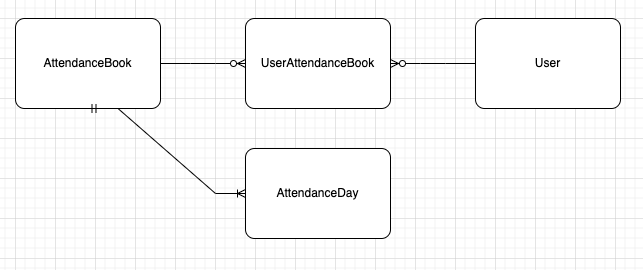 1개의 출석부는 [월, 화, 수, 목, 금 ] 등 1..N 개의 AttendanceDays 가 있습니다.