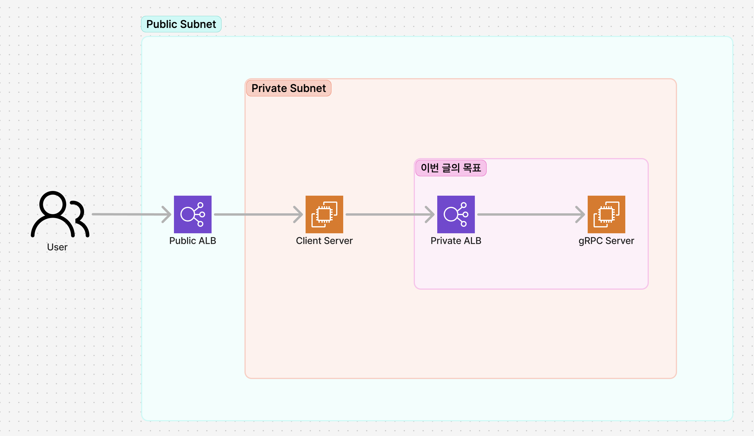 회사 인프라를 점점 MSA 로 옮기고 있는 와중에 내부 ALB 로 gRPC 서버를 연결해야 하는 일이 생겼다.