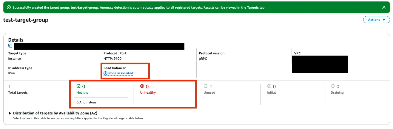 ( 애초에 HTTP 9100 으로 하면 gRPC target Group 자체 선택이 불가능하다. )