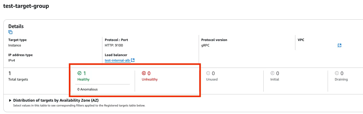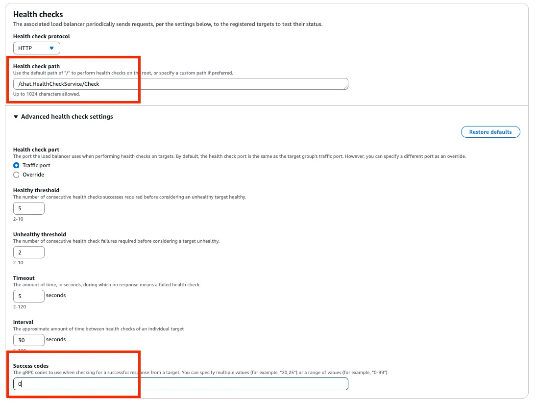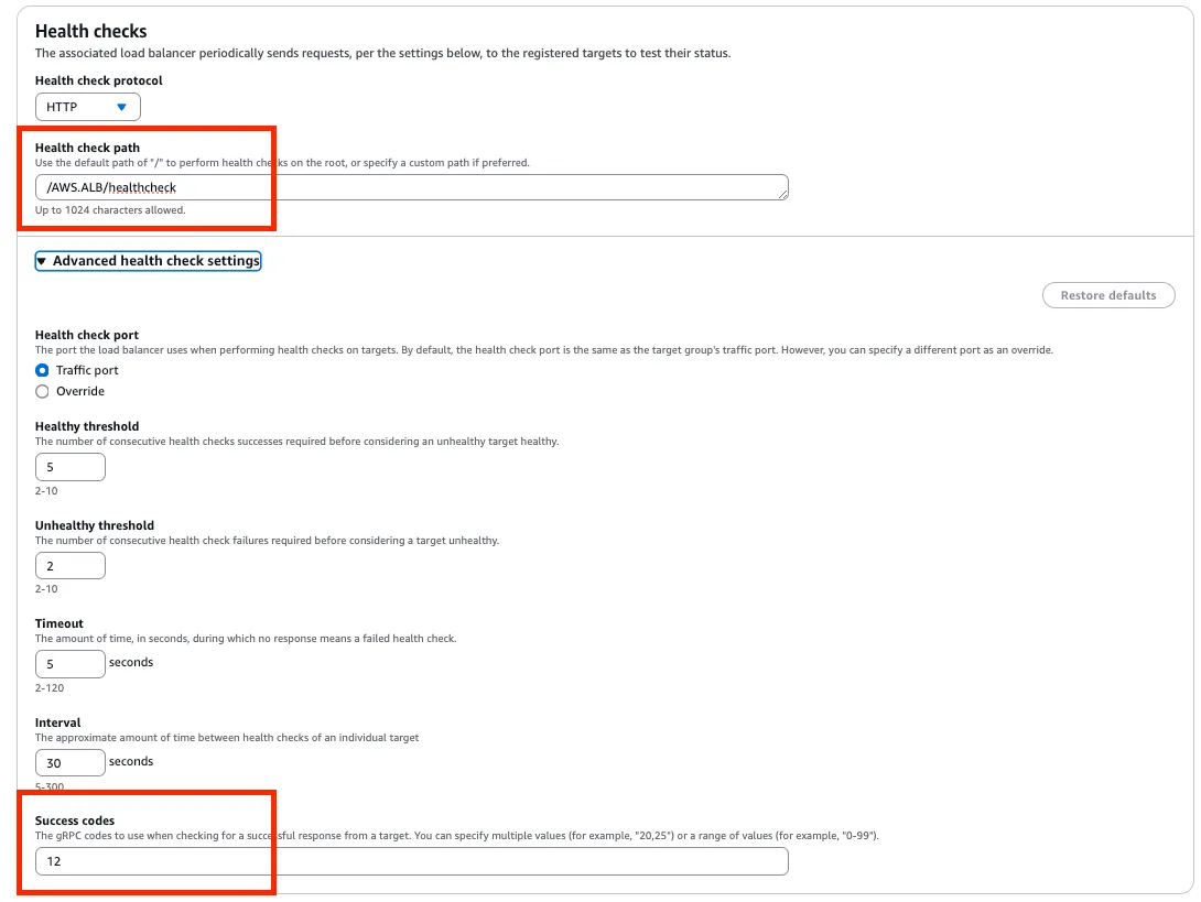 즉, AWS 는 대상그룹의 gRPC 서버 까지 요청이 도달하는지만 체크한다는 의미이다.