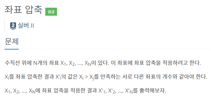 입력 받은 수를 set()를 통해 중복을 제거하고 정렬하여 for 문을 통해 index를 찾아 출력하였다.