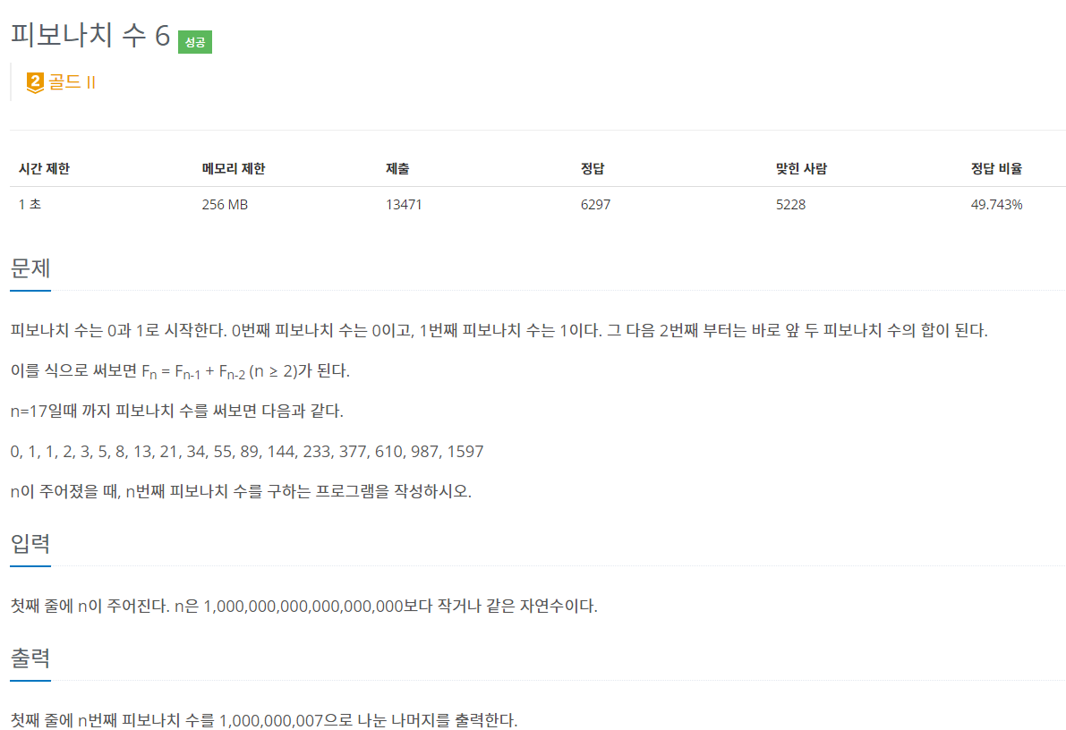 ✅문제 - 피보나치 수 6 (11444번)