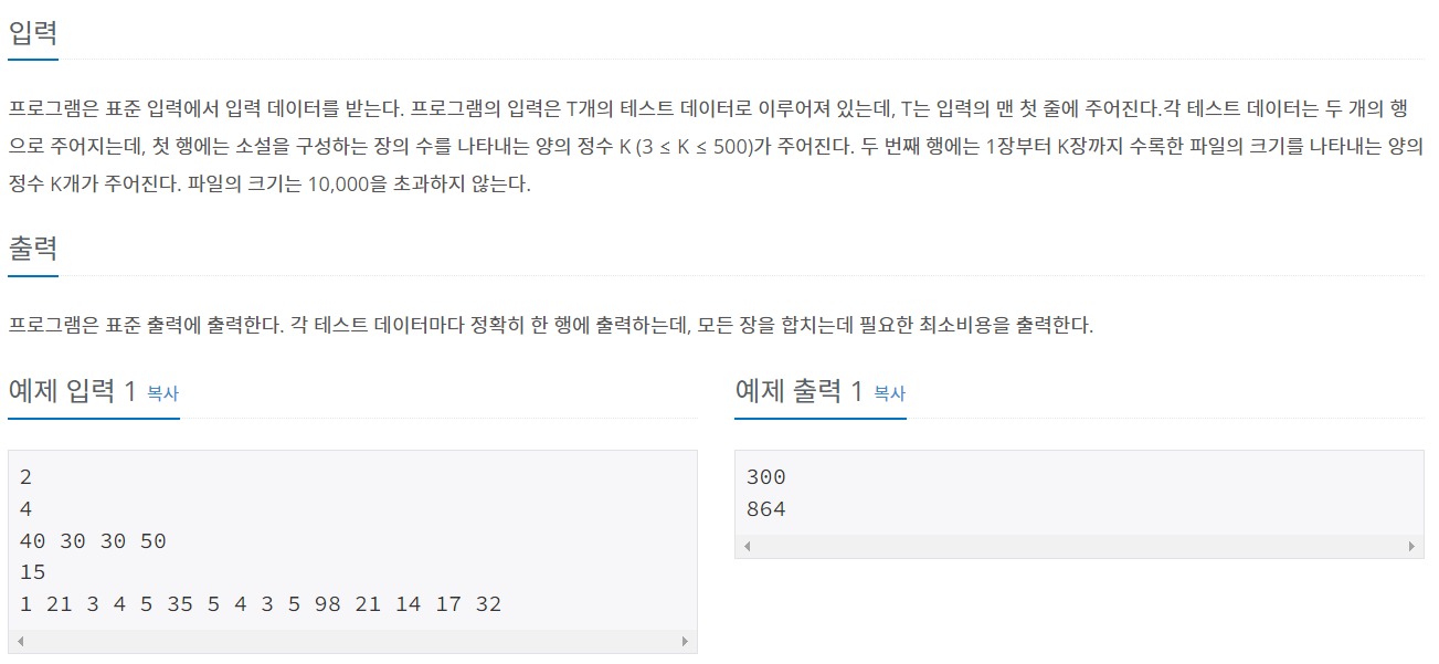 ( dp[start][end] = min(dp[start][mid] + dp[mid+1][end]) + cost[start][end] 을 만족시키는 mid 값을 opt[start][end]에 저장 )