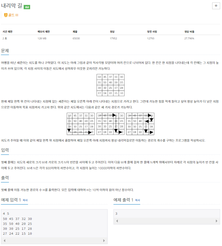 ✅문제 - 내리막 길 (1520번)