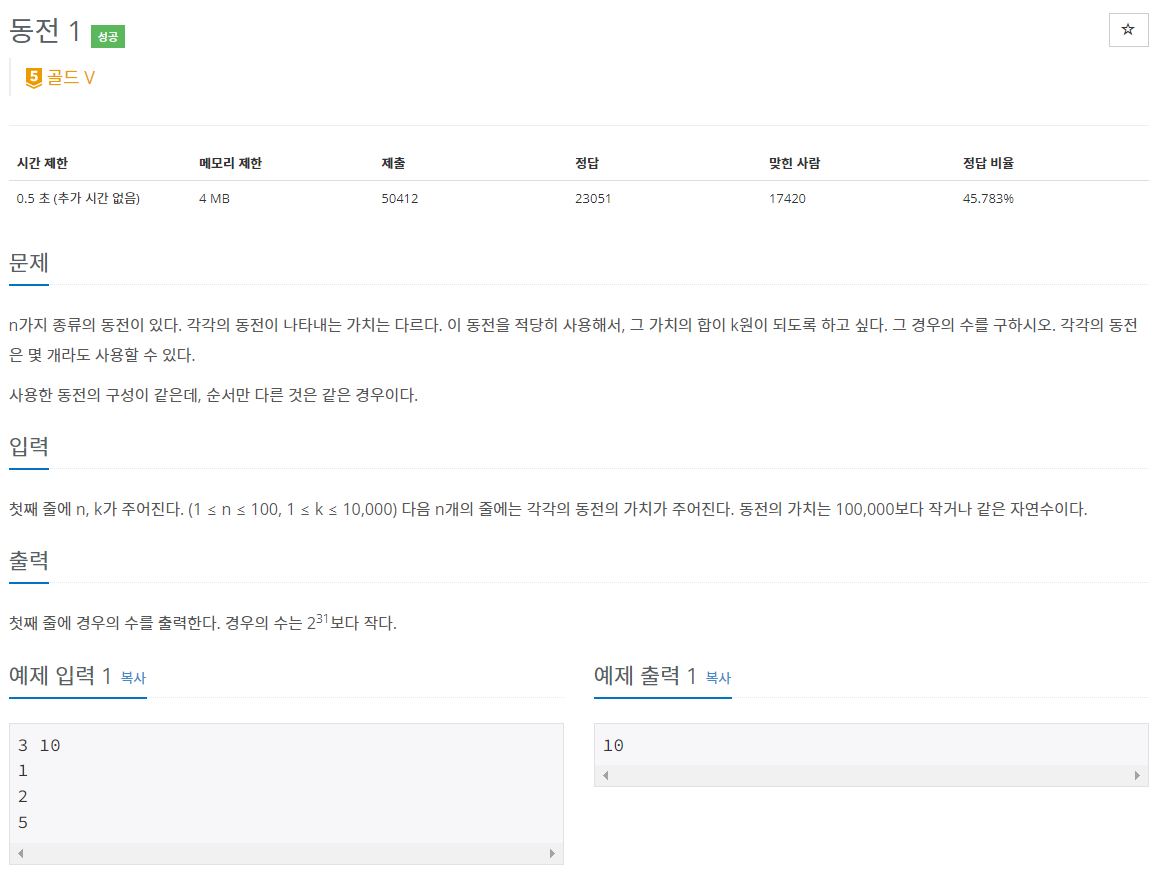 # 두 번째 동전부터 dp를 계속 갱신해나감