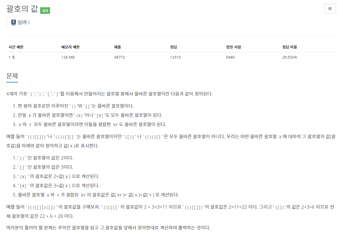 ✅문제 - 괄호의 값(2504번)