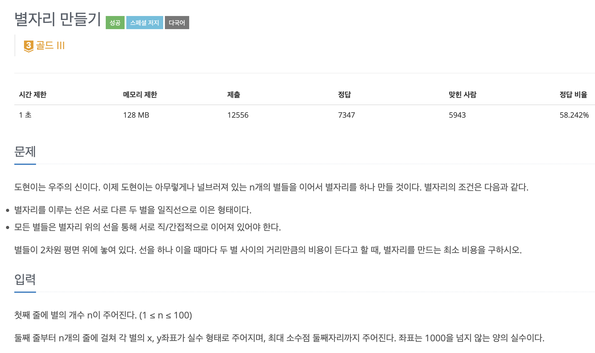 ✅ 문제 - [백준] 별자리 만들기 (4386번)