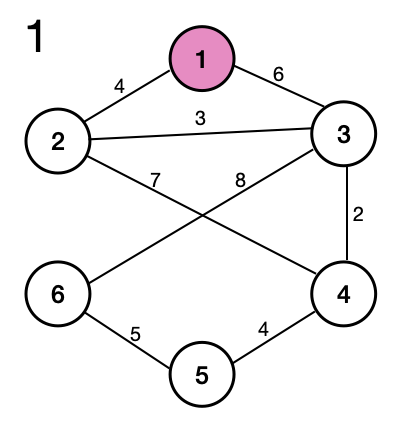 우리는 1번 노드에서 시작한다고 가정하자