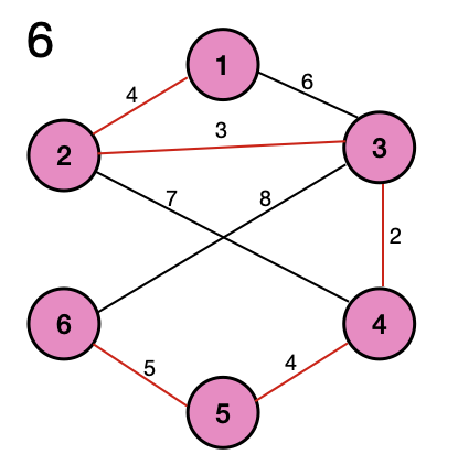 왼쪽의 그림처럼 6개의 노드와 8개의 엣지가 있다고 하자.