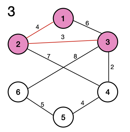 그러므로 다음 상태에서는 코스트가 3인 3번 노드를 방문하게 된다.