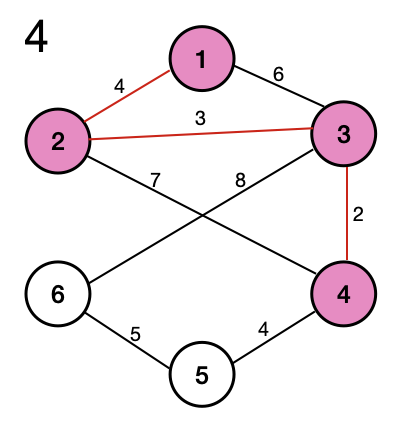 4번 노드를 방문하면 4번 노드와 연결된 엣지들을 힙큐에 추가해 준다.