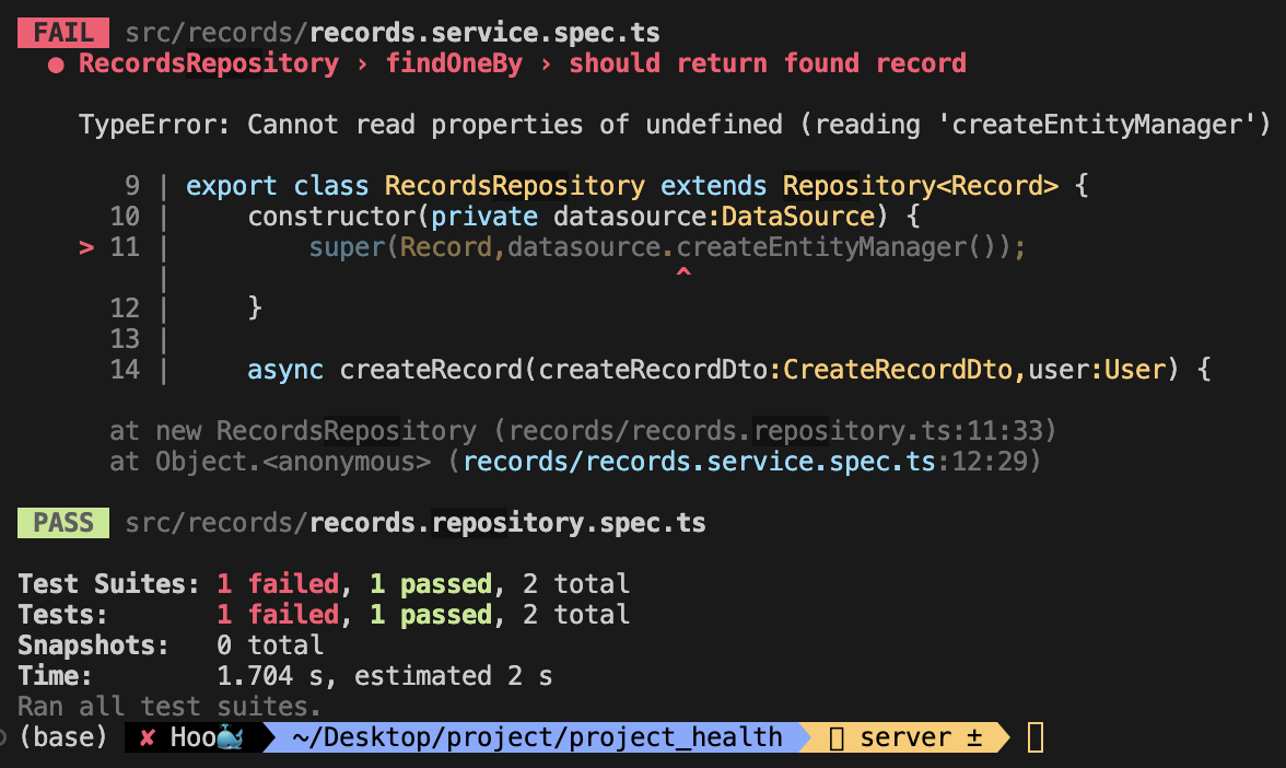 그리고 생성한 module에서 recordsRepository 인스턴스를 .get<>()을 통해 가지고 오자 !