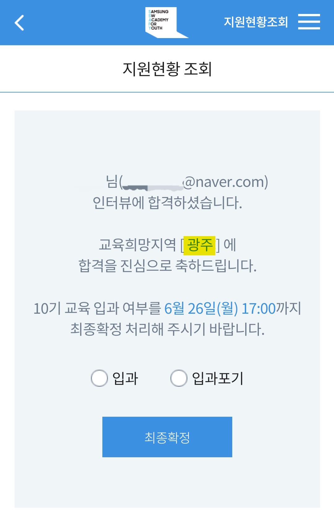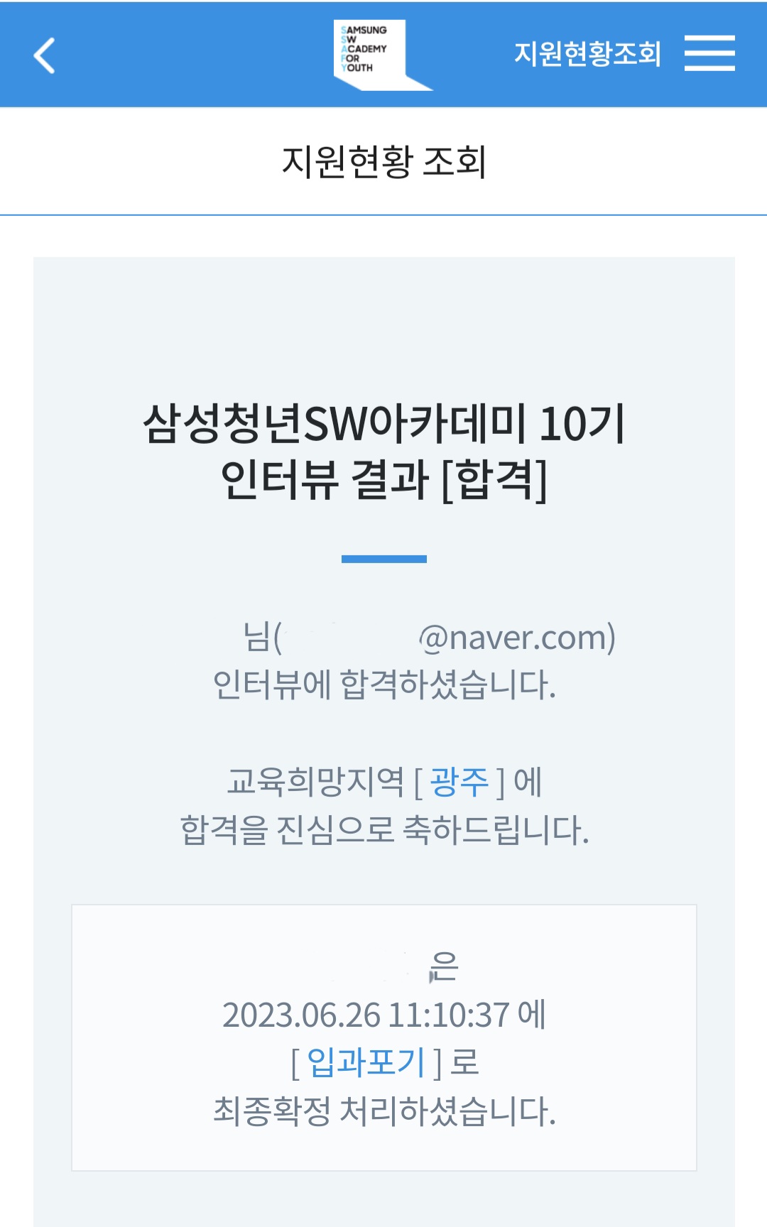 2023년 6월 20일 오후 3시 드디어 기다리던 SSAFY 인터뷰 결과가 나왔다.