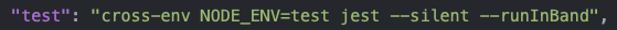 package.json 파일로 들어가 "test" 실행 스크립트 뒤에 --runInBand 옵션을 추가해 줍시다 !