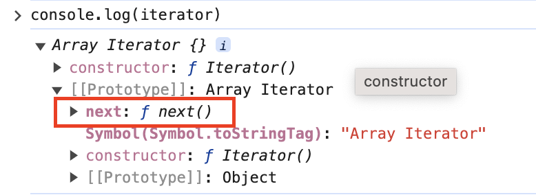 그리고 [Symbol.iterator] () 함수는 내부에 next() 메소드를 가집니다.