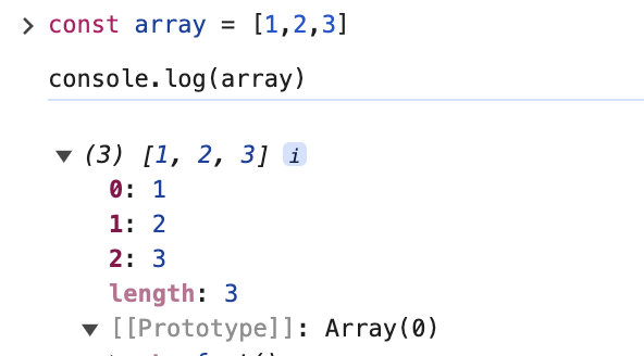 처음에 우리가 선언한 배열은 const array = [1,2,3] 이었다.