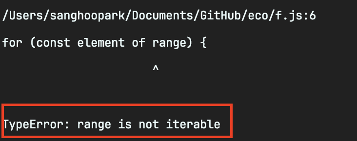 먼저 이터러블 / 이터레이터 프로토콜을 만족하는 경우 구조분해할당과 for ... of 반복문을 사용할 수 있기 때문에 range 함수가 구조분해할당과 for ... of 반복문을 사용할 수 있는지를 테스트합니다.