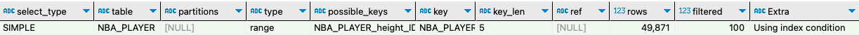 - possible_keys , key : 분명 height에 인덱스를 생성했음에도 불구하고 아무런 키가 사용되고 있지 않다 !!!