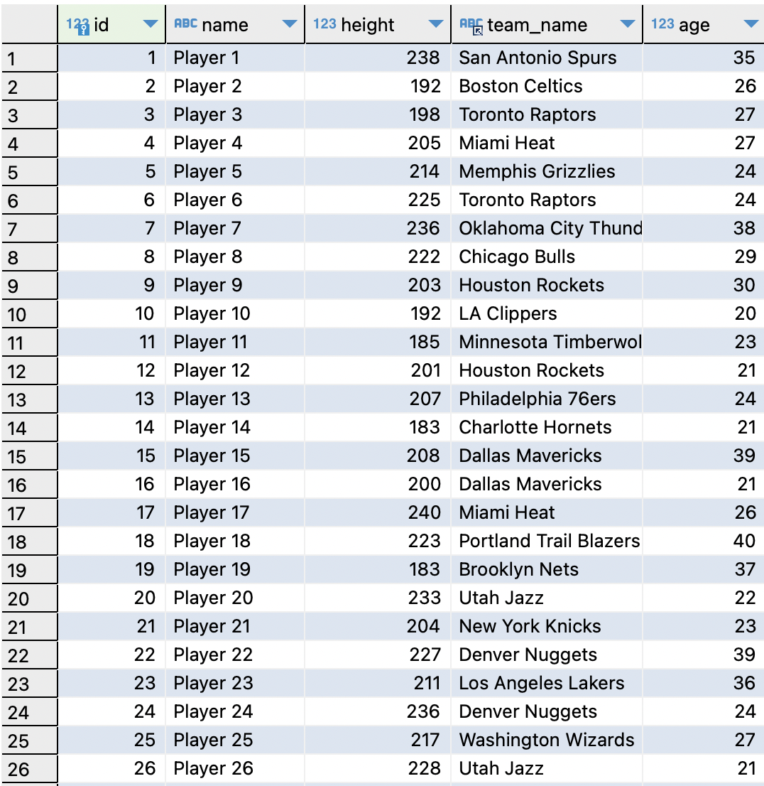 NBA에서 키 큰 선수를 7feet 선수라고 하는데 나는 7feet 선수를 조회하기 위해 위와 같이 쿼리문을 작성했다.