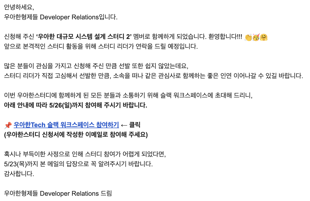 우아한 스터디 모집 글을 보자마자 지원서를 작성했다 !