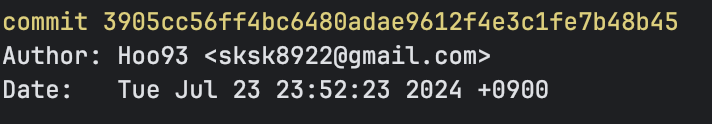 git log 를 실행하면 commit 해시 값을 확인할 수 있습니다.